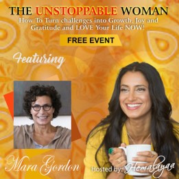Do you want to go for your dreams and creative endeavors, but get stopped again and again, whether it be by your own mind, or life’s dramas? Then join me for an amazing journey and FREE online event called The Unstoppable Woman: Secrets on Turning Challenges into Growth, Finding Joy and Gratitude Daily and Loving your life NOW! Sign up for FREE HERE